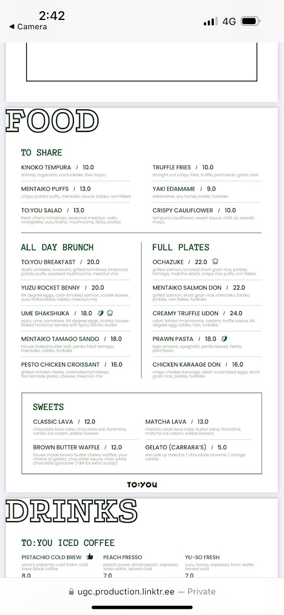 Specializing in Japanese fusion cuisine, TO:YOU Cafe has garnered rave reviews for its unique approach to traditional dishes. From the crispy Kinoko Tempura, accentuated with fragrant togarashi and drizzled with Thai mayo, to the indulgent Mentai Puffs—crispy potato puffs bursting with umami, enhanced by mentaiko sauce—the menu is a delight for adventurous eaters. If you're in the mood for something lighter but equally flavorful, the TOYOU Salad offers a refreshing blend of seasonal greens, cherry tomatoes, and a vibrant wafu vinaigrette that tantalizes the taste buds.